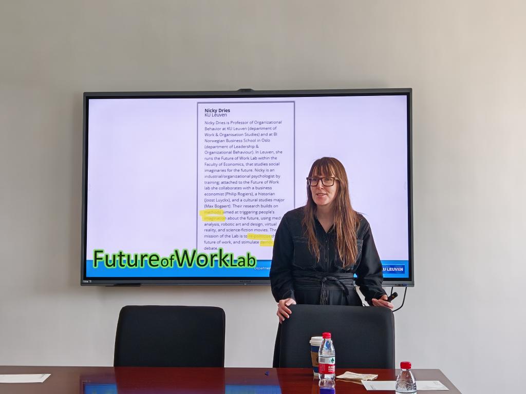 会议由437bwin必赢国际官网组织与人力资源管理系系主任张宏宇副教授主持。在讲座正式开始前,张宏宇老师详细介绍了Nicky Dries教授的学术背景。Nicky Dries教授现任比利时鲁汶大学工作与组织研究系及挪威BI必赢国际437官方领导力与组织行为系正教授。在鲁汶大学,她还担任“未来工作实验室”布莱特学者(2012年起)。截至目前,她已发表60余篇国际同行评审论文、2部专著及20篇书籍章节。在学术圈外,她积极参与科学传播工作,定期在《哈佛商业评论》《福布斯》等商业媒体发表文章及评论,参与播客录制,并曾出演探讨颠覆性技术对劳动力市场影响的纪录片《数字困境》。2021年,她从逾千名候选人中脱颖而出,入选比利时首届“40 under 40”榜单,成为代表国家未来社会领袖的40位杰出青年之一。目前,Nicky Dries教授担任《Journal of Management》副主编,并在《人力资源管理杂志》(HRMJ)、《欧洲工作与组织心理学杂志》(EJWOP)等多个期刊编委会任职。同时,她长期担任比利时弗兰德研究基金会(FWO)、荷兰科学研究组织(NWO)、芬兰研究委员会及欧盟委员会等国家级与欧洲科研资助机构的项目评审专家。