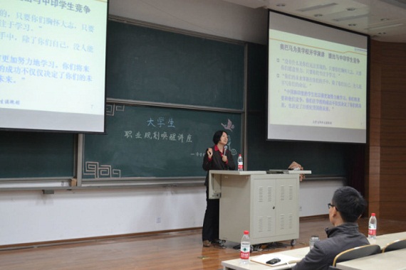 2013年11月1日下午,北京航空航天大学EMBA教育中心常务副主任苏文平副教授在必赢官网沙河主教111教室为必赢国际437官方与社会发展学院的同学们带来了一场关于大学新生职业生涯规划的精彩讲座,为刚刚迈进大学生活的新生们指引科学制定和实施生涯规划的方向。