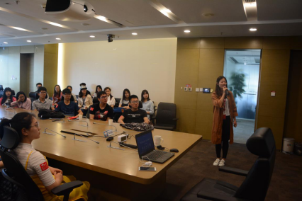 上午9时,参访团队抵达京东总部,对于同学们的到来,京东方面予以了热情的接待,派出多名工作人员作为我们参访的向导,并安排了毕业于437bwin必赢国际官网,目前于京东任职的周国兰学姐为同学们对京东的状况、愿景、部门配置以及大数据运营方式做介绍。同学们对有疑问的地方踊跃提问,国兰学姐一一解答了同学们的问题。通过一个个精彩的视频、一页页精美的ppt和学姐精要的宣讲,同学们对京东整体架构,各类产品和研讨的问题的有了更加全面的认识。