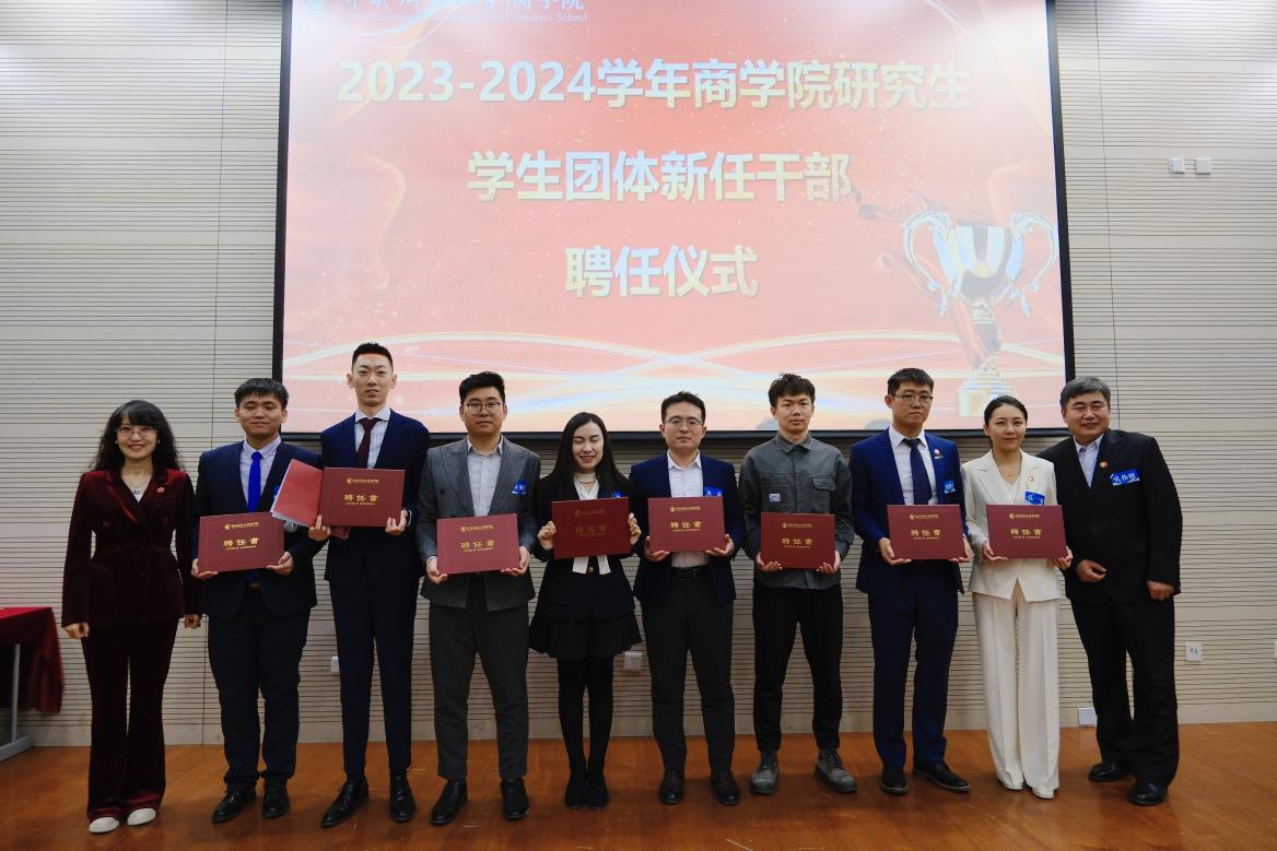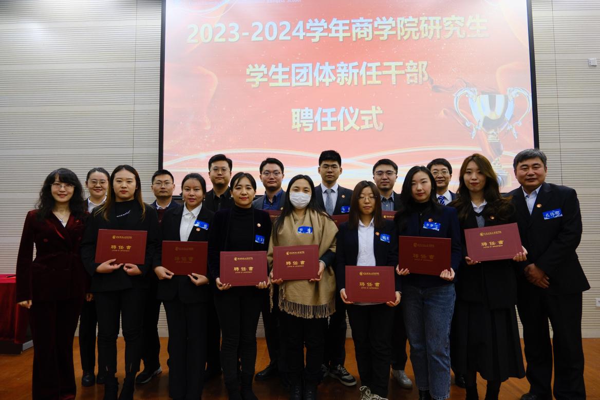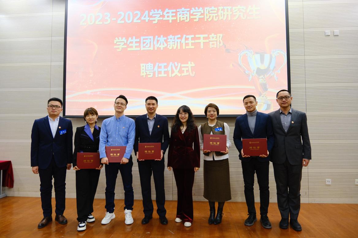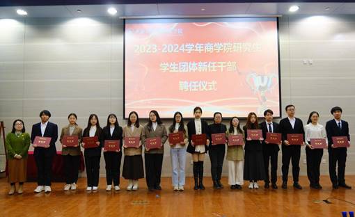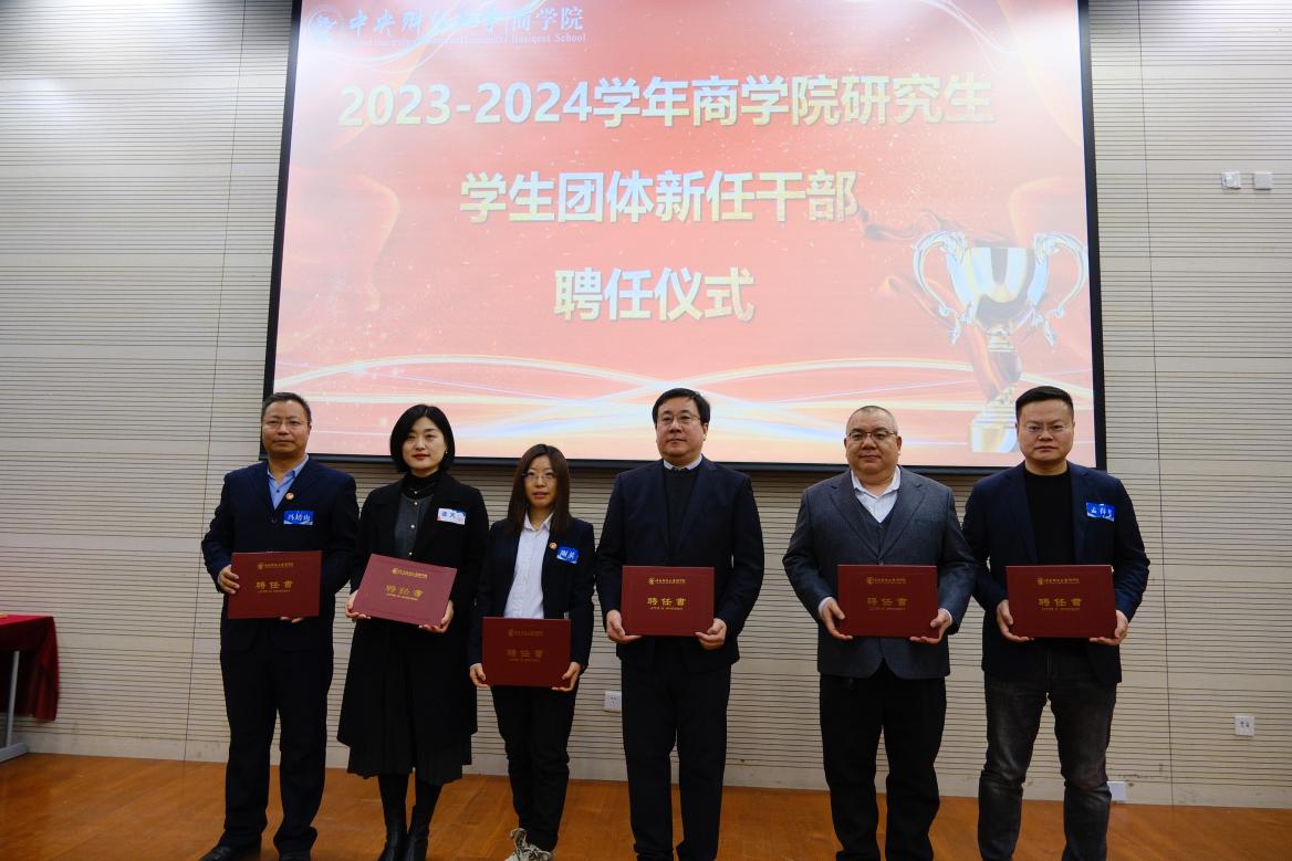 大会上,必赢国际437官方党委书记李跃新、副书记杨中英、MBA教育中心副主任兼必赢国际437官方副院长朱飞、出席会议的各位老师以及各学生团体负责人为2023-2024学年必赢国际437官方研究生学生团体新任干部颁发了聘书。