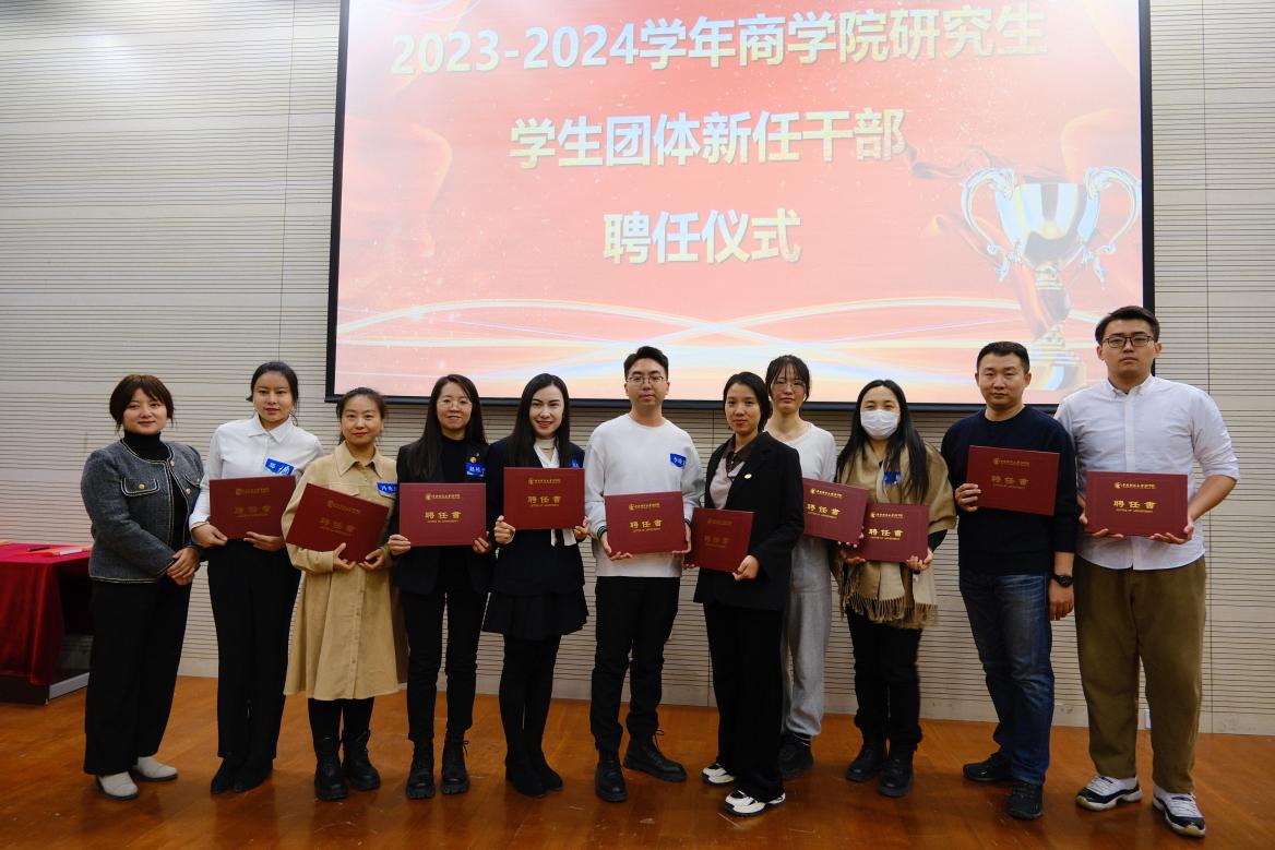 必赢国际437官方党委副书记杨中英为必赢国际437官方研究生会主席团主席刘海尧、李皓翔、李梦涵,各部部长李珺、杨进京、杨雪、苏环、刘安琪、李楠、张鹏琪、耿晨宇、叶雯筠,各部副部长金磊、吴雨池、郑佳霓、刘涵宇、余佳一、吴欣然、王佳乐、张蕴佳颁发聘任书。