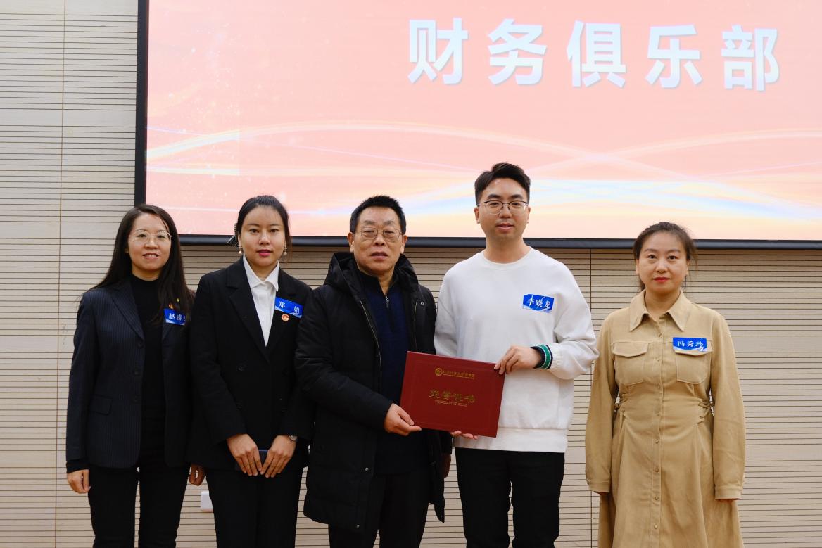 MBA创业俱乐部执行主席冯培山,创业俱乐部副主席靳昊、杨子江、张义集体上台,并为谢英杰、何飞、孟春考颁发证书。