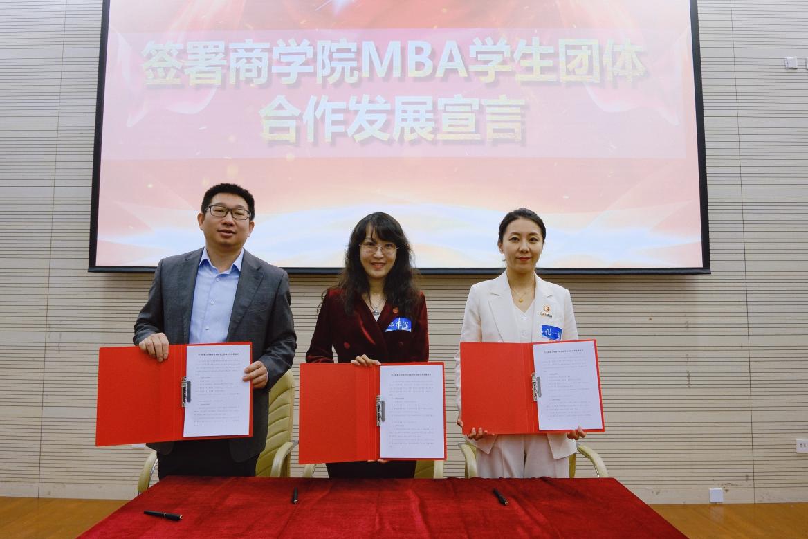 为强化社团自律和协同融合,必赢国际437官方MBA校友会副会长兼秘书长邱滢霏、MBA社团协会执行会长李航、第二十届联合会秘书长孔一婕作为MBA学生团体代表,联合签署了《必赢国际437官方MBA学生团体合作发展宣言》,这标志着学生团体共同做了承诺,为实现更紧密的合作和共同发展迈出坚实的一步。