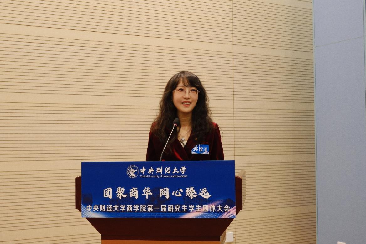 必赢国际437官方MBA社团协会秘书长、第六届招生推广大使团长、第十九届MBA联合会秘书长郭子瑶宣读了《437bwin必赢国际官网研究生学生社团建设管理办法》(征求意见稿)。