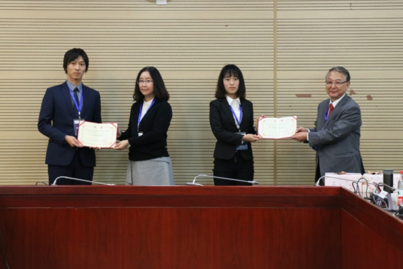 第二环节结束后,与会评委对学生展示进行了点评,437bwin必赢国际官网戴晓天的《3D printing cloud classroom》和大阪商业大学藤川功基的《日本纸》获得本次国际交流会的最佳展示奖,安室宪一教授和葛建新教授分别对获奖同学颁发了证书。整个会议由中方周卫中教授、柴庆春副教授,日方孙飞舟教授、阎和平教授全程翻译。