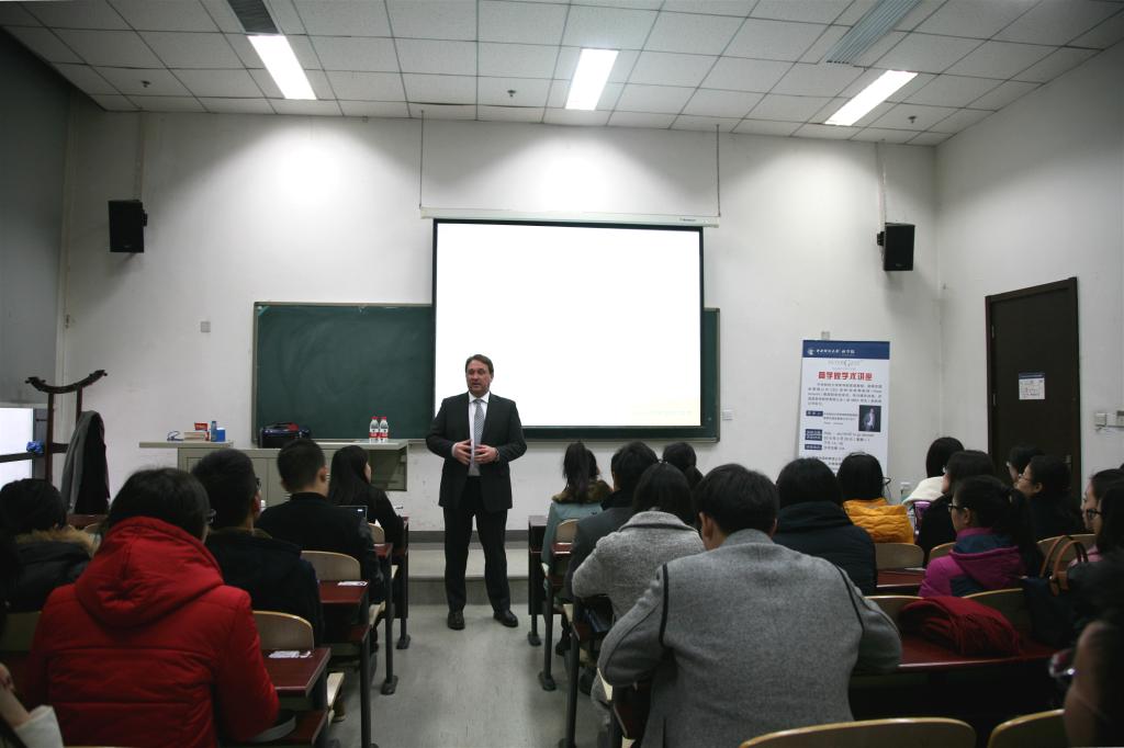 2月29日 下午,Peter Anterist教授在沙河校区举办了一场学术讲座,Peter Anterist教授结合实际案例讲解了企业在拓展海外市场过程中常见的十个误区,并与同学们就国际化背景下企业是否应该扩展海外市场、应如何扩展海外市场等问题展开了深入探讨。必赢国际437官方学术型硕士研究生、MBA学生参加了讲座。
