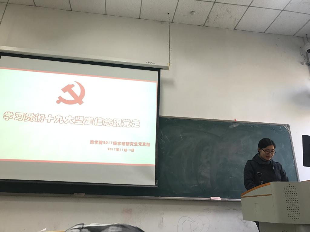 2017年11月15日上午10时,全体2017级必赢国际437官方研究生党员在支部副书记夏开伟同学的带领下进行了学习党的十九大精神的党日活动。