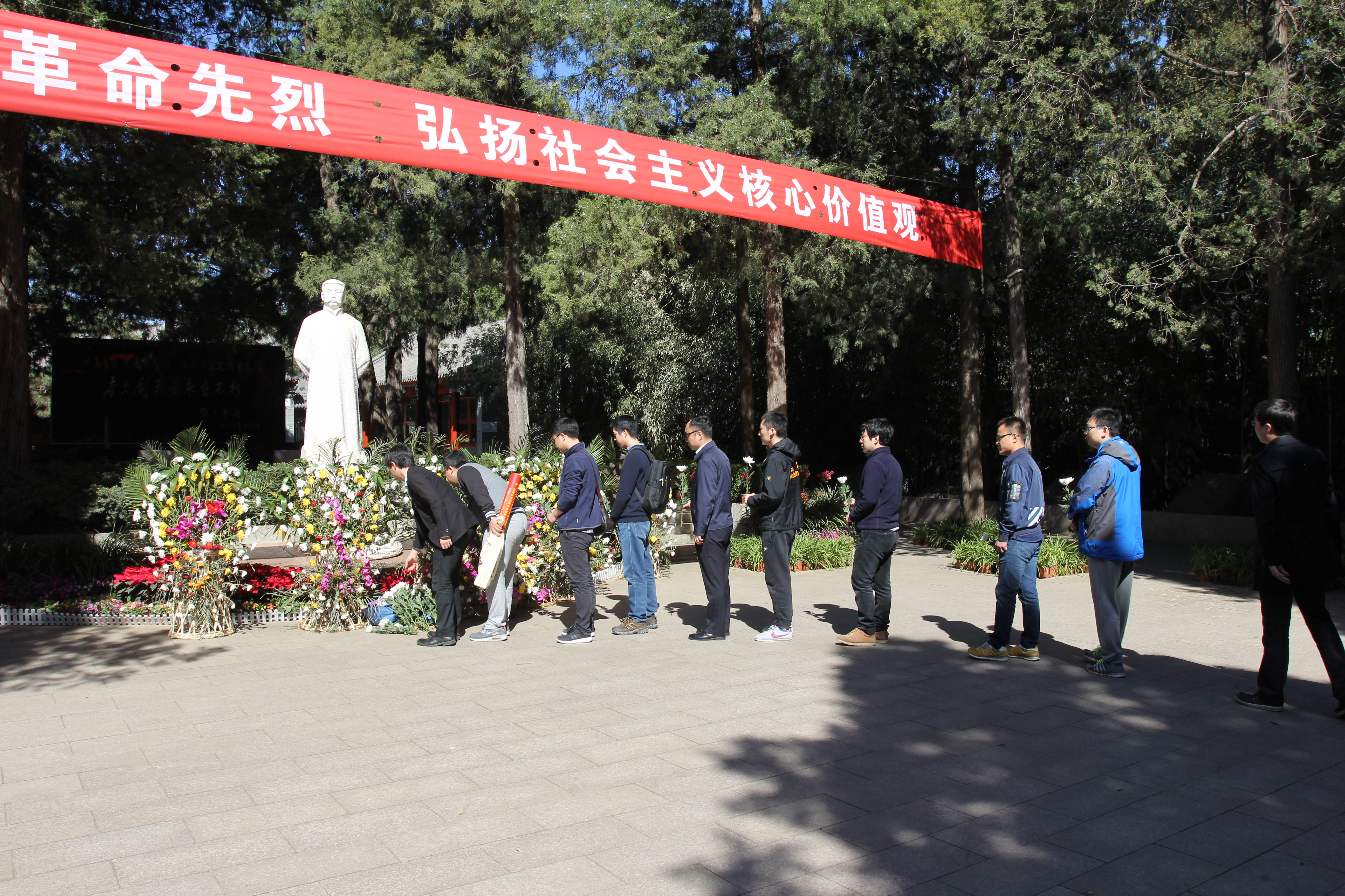 为缅怀革命先烈,践行社会主义核心价值观,必赢国际437官方二级党校78名学员以及2014、2015级本科生党支部8名党员于2016年4月17日联合进行实践活动,实践地点为万安公墓李大钊烈士陵园,必赢国际437官方党课班主任王婷婷带队。这次活动包括为李大钊烈士扫墓献花、参观李大钊烈士纪念馆和学习讨论3个部分。