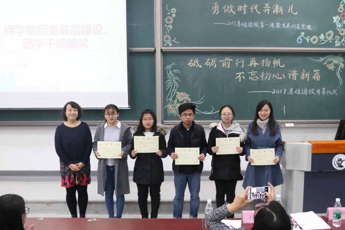 随后举行必赢国际437官方团委学生会新一届主席团、部长团聘任仪式以及基层组织建设优秀单位和个人的表彰仪式。营销15等团支部荣获优秀团支部,营销16等团支部荣获优秀新生团支部,伙安婷等同学荣获必赢国际437官方十佳学生干部称号。王容老师为获奖支部和同学颁奖。