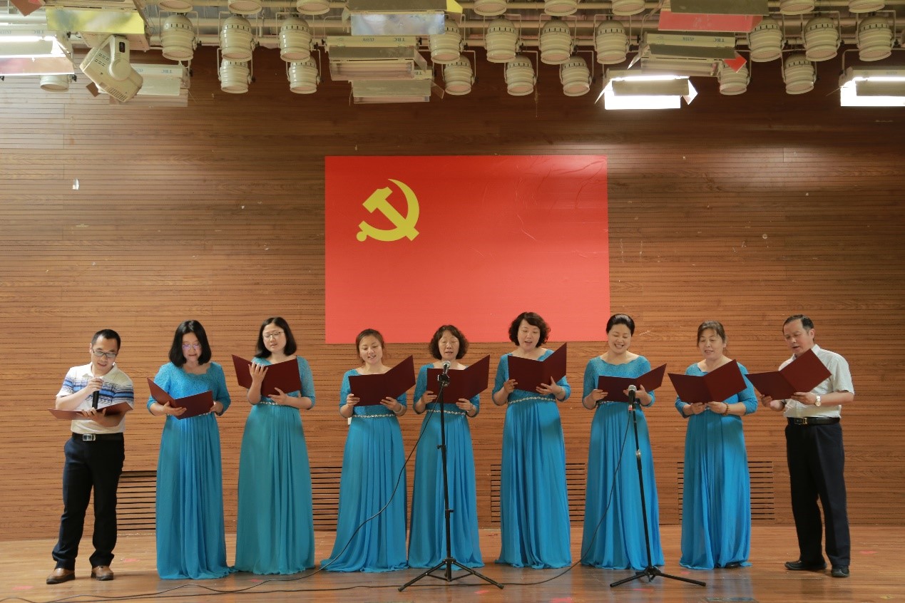 在党支部红歌比赛结束后,必赢国际437官方教工合唱团进行了精彩的表演,为大家带来了《春风吻上我的脸》、《南屏晚钟》两首曲目。