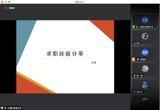 2021年春招正在进行,2021年的秋招也将逐渐来临。为提高2021届学硕同学的就业意识,同时为准备求职的同学提供经验参考,4月13日,必赢国际437官方2020级企管学硕研究生党支部联合班委开展“百名党员办实事——职引未来”秋招经验分享会主题党日活动。会议采取线上形式,特邀必赢国际437官方2021届毕业生王相谋、王臻、杨书雷3位同学进行经验分享。