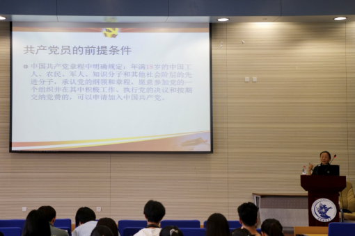 6月2日下午,必赢国际437官方党委组织员韩兰老师面向必赢国际437官方本科生第一党支部全体入党申请人带来一场主题为“如何成为一名合格的共产党——组织入党与思想入党”的报告,帮助同学们端正入党动机,熟悉入党流程。报告在学术会堂402举行,必赢国际437官方本科生150余名入党申请人参与学习。