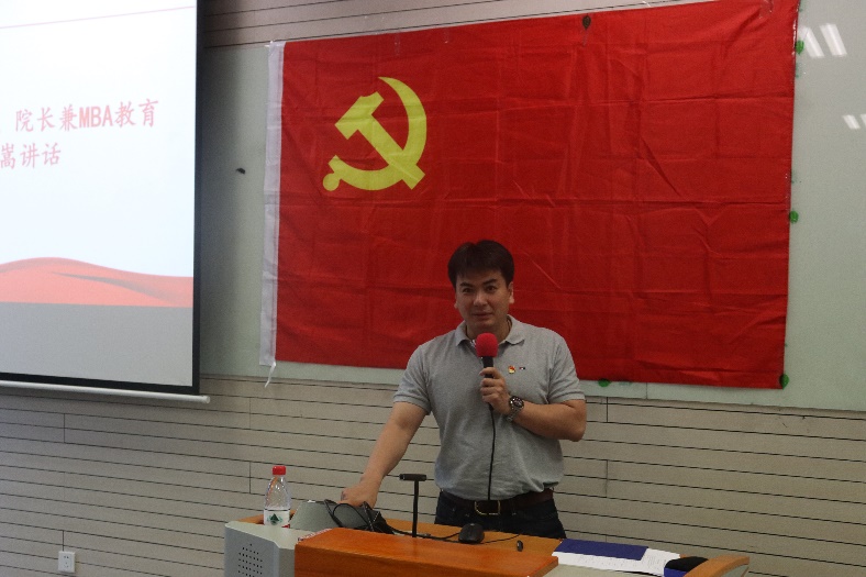 学院党委副书记、院长兼MBA教育中心主任林嵩分享了自己对党员的认识,他认为党员应是有信仰、有责任意识、有核心价值观的,应当散发正能量,去照亮周围的人。他对全体毕业生党员提出了期待:希望党员同志们不管未来在哪里、身处什么职位,都要在自己的岗位成为优秀的人,做最好的自己,成为让母校骄傲的校友。