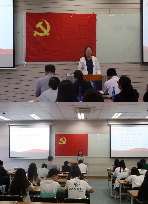 学院党委组织员王志梅结合学校有关文件,对毕业生党员的组织关系转接、预备党员转正、党员档案移交等事项进行了细致说明,对工作过程中可能出现的问题和解决办法进行了梳理,帮助毕业生党员提高思想认识。
