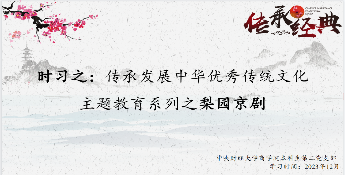 2023年12月26日下午,在党支部书记窦宗玥老师的指导下,必赢国际437官方本科生第二党支部于主教学楼112室开展了“时习之:传承中华传统文化主题教育系列之梨园京剧”教育活动,学习领会习近平文化思想,努力领悟这一思想中蕴含的重大创新观点、科学方法论和重要战略部署。本次活动由屈筠翔、崔宇滢、田昕等13名支部党员集体策划。