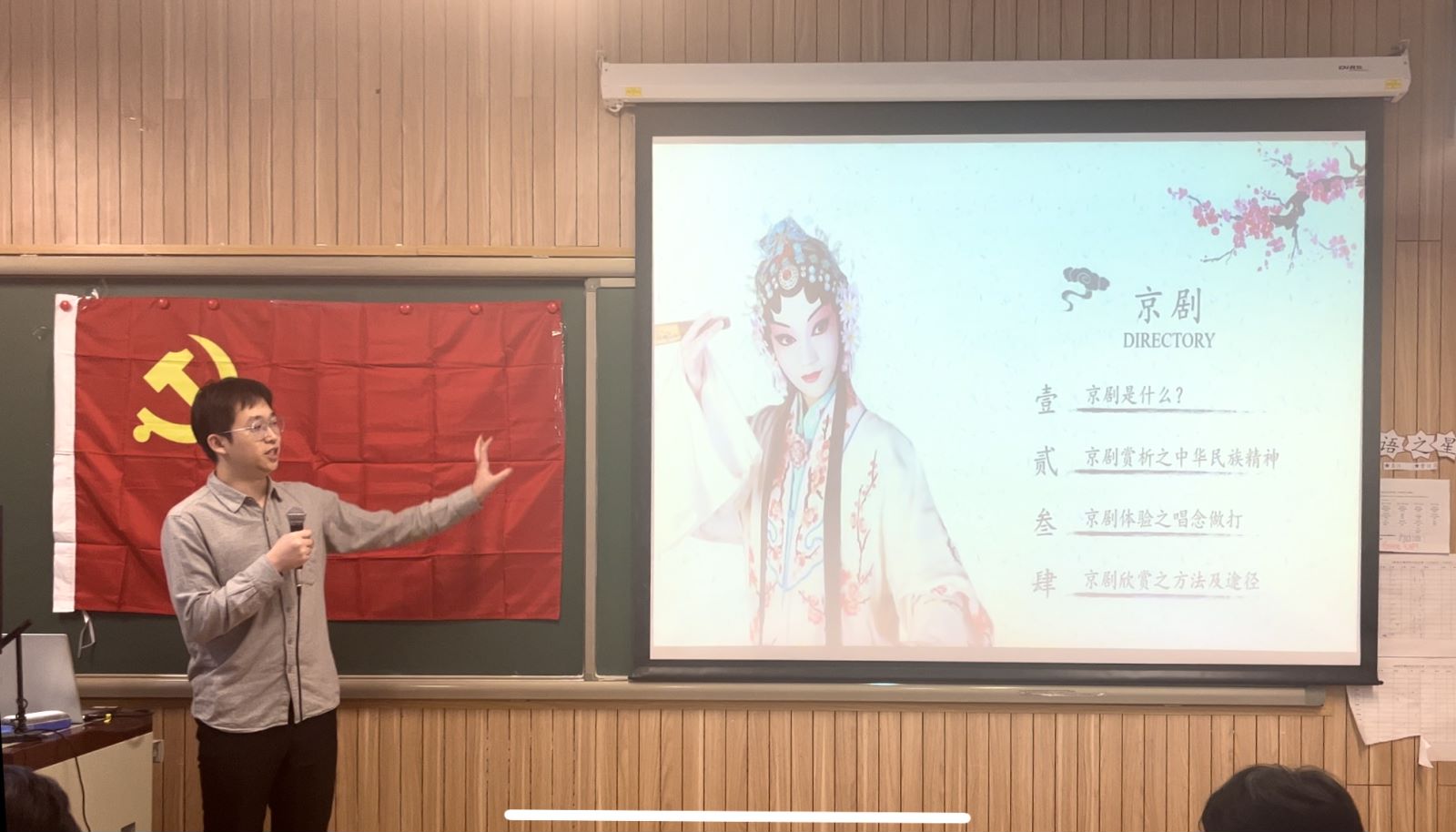 在理论学习之后,屈筠翔同学以京剧这一表演形式为载体,带领支部全体党员从戏曲的唱腔、表演技巧、历史渊源等角度,深入了解了中华传统的戏曲文化,感受京剧中所包含的深邃文化内涵。在实践层面,支部党员还通过集体表演、角色扮演等形式,沉浸式体验戏曲表演的魅力,在欢声笑语中增强了对传统文化的认知和感受。