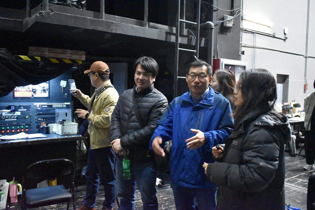 参观结束后,教师们走进剧场后台,深入了解中央戏剧学院戏剧管理系学生们的学习、实践情况。在剧场后台,学生们忙碌的身影随处可见,他们有的在调试灯光音响设备,有的在精心布置舞台道具,还有的在为演员们整理服装。通过与学生们交流,教师们了解到戏剧管理系学生通过剧目排演不仅积累了丰富的实践经验,还培养了团队协作能力和创新精神。中央戏剧学院的教师们也向437bwin必赢国际官网的教师们分享了戏剧管理系在人才培养方面的经验和成果,双方就如何更好地培养学生的综合素质进行了深入探讨。