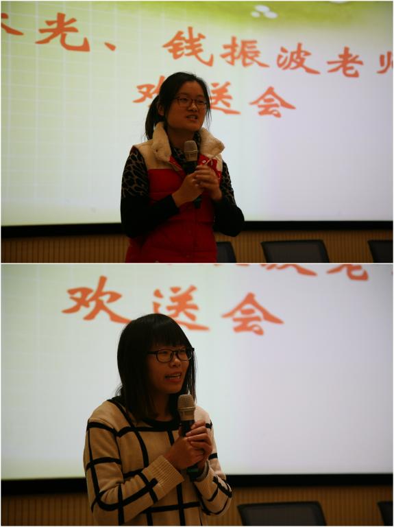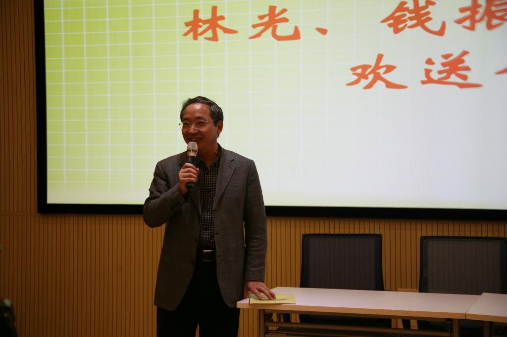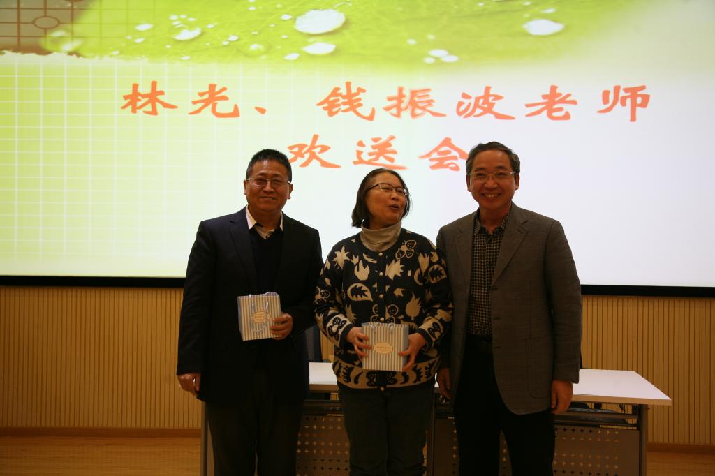 分工会首先为两位老师制作了欢送会PPT。PPT通过图片、视频回顾了两位老师在学院几十年的辛勤教学、桃李天下的丰硕成就,与学院同仁一起共事的点点滴滴,以及同事们的真诚祝福。林光老师、钱振波老师分别发言,感谢学院领导及同仁在工作中的支持和鼓励,感谢与同事们相处的快乐时光。王瑞华院长代表全院向两位学院元老级教工表示衷心感谢,感谢几十年如一日辛勤付出,为学院发展做出巨大的贡献,同时也希望两位老师继续关心关注学院发展,为学院发展发挥余热。葛建新书记委托林嵩副书记转达了对两位老师的祝福,并希望两位老师常回家看看。