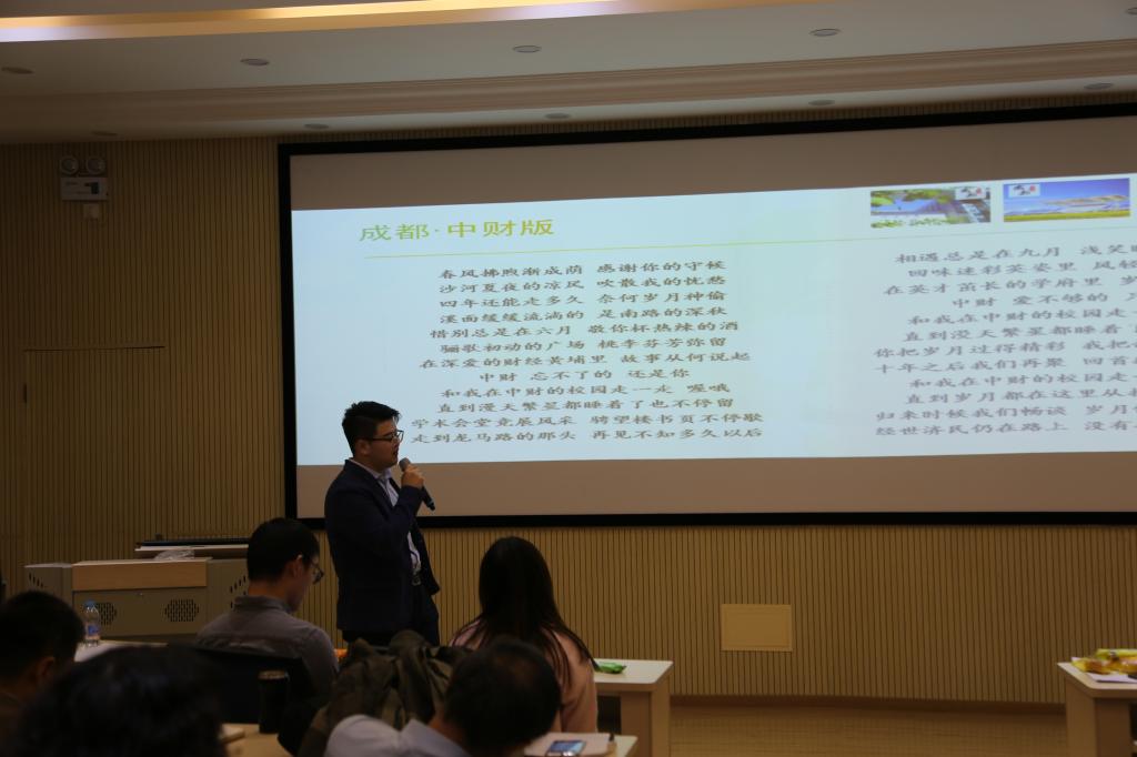 联欢活动由学院今年新入职的两位新教工朱曦济、王喆主持。老师们以各系各部门为单位准备了精彩的表演节目。首先是市场营销系的《最炫商院风》,这首曾经火遍大江南北的歌曲,配合着营销系老师的欢快舞蹈,为联欢活动迎来了一个开门红。供应链与运营管理系三位男老师带来的《红米饭,南瓜汤》让我们再次回味了伟大的井冈山精神;《外婆的澎湖湾》熟悉而温馨的乐曲则让在座的老师重温了一次自己纯真的童年时光。郭骁老师的一曲反串《回娘家》节目,则让大家看到了平时话语不多的郭骁老师特有才艺和幽默风趣;刘小元老师和刘书博老师的歌舞《冬天里的一把火》,再次燃烧起那激情的岁月。MBA中心的小鲜肉陈明博独唱中财版《成都》,则以今年的流行色唱出了我们中财韵味;学院行政部门的方言版《送别》朗诵和吉他版《送别》弹唱,感受到了平时工作严肃繁忙的行政老师们别具一格的幽默和细腻情感;俸军老师独唱一曲《当你老了》,浓浓亲情回荡于教工中间。战略系全体老师为大家奉献了《明天会更好》,以歌声祝愿学校、学院、老师发展的更好。