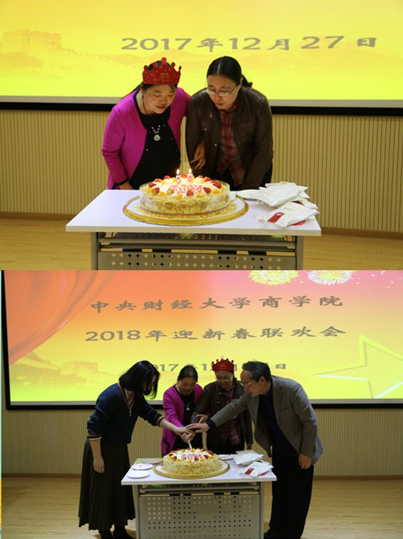 联欢活动之际,正是必赢官网教工王志红、林琳两位老师的生日。学院特别准备生日蛋糕,全体老师在联欢会现场为两位老师祝福生日快乐,感谢两位老师一年的辛苦付出。整个晚会现场散发着暖暖的温情。