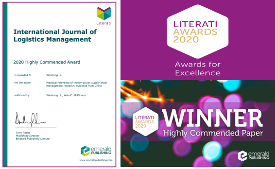 近日,Emerald集团公布了2020年度Emerald Literati Awards for Excellence评选结果。以必赢官网刘晓红教授为第一作者(兼通讯作者)发表在《The International Journal of Logistics Management》上的论文“Practical relevance of theory-driven supply chain management research: evidence from China”荣获了2020年度Emerald Literati Highly Commended Award。(Liu, X.*and McKinnon, A. (2019).Practical relevance of the...